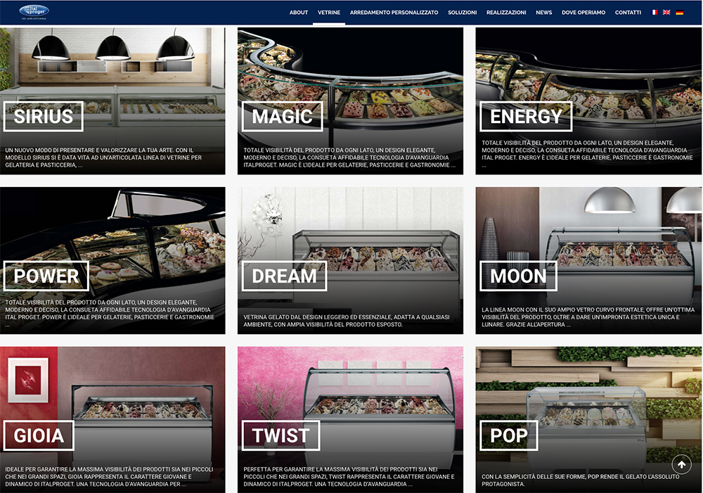 Italproget, fondata agli inizi degli anni ’80 dall’entusiasmo e dall’esperienza dei 4 soci, è oggi tra le aziende leader dei produttori italiani di vetrine refrigerate per gelati e pasticcerie e di arredamento personalizzato nell’ambito del food and beverage.