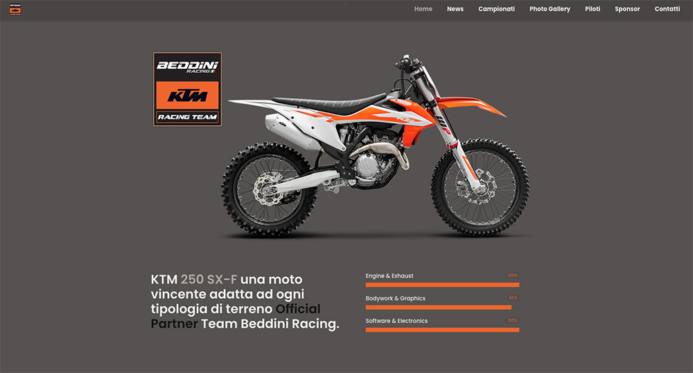 Il Team Beddini , fondato da Dario Beddini, è sinonimo di serietà e passione nel mondo del Motocross. Il Team ha aumentato il suo prestigio di anno in anno, partner esclusivo della KTM FACTORY , oggi tra i migliori team del circuito Nazionale ed Internazionale.