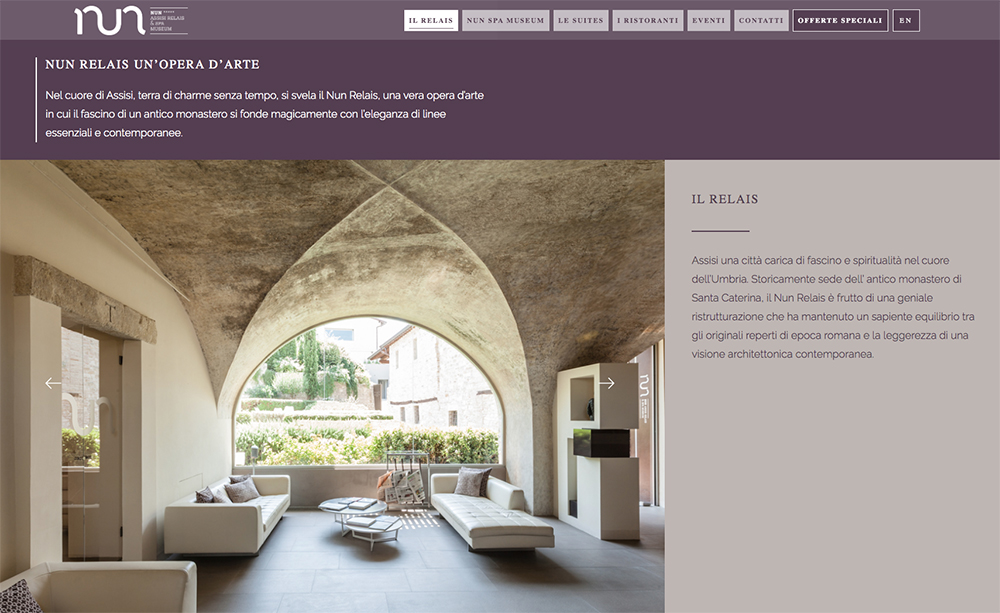 Nel cuore di Assisi, terra di charme senza tempo, si svela il Nun Relais, una vera opera d’arte in cui il fascino di un antico monastero si fonde magicamente con l’eleganza di linee essenziali e contemporanee.